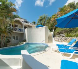 There is a refreshing plunge pool just a few steps down off of Grecian Patio, with lounge chairs and an umbrella to maximize relaxation.